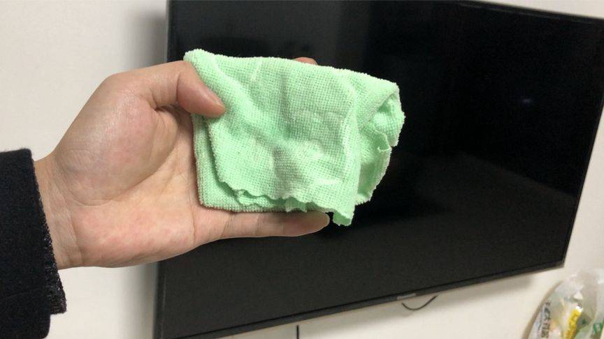 然后,將純棉布折疊成四分之一大小,我們就可以用酒精清潔法清潔電視屏幕了,記住,一定要輕輕擦拭電視屏幕,不要用力過猛,否則會刮傷屏幕。