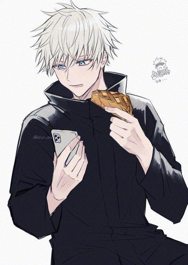 再來看看太太筆下的五條悟老師吃東西的畫面吧。五條悟老師一手拿著受級,另一隻手拿著一塊蛋糕,小嘴處還伸出舌頭,看起來很yummy的感覺。看到五條悟老師的吃相,瞬間也喜歡上了。